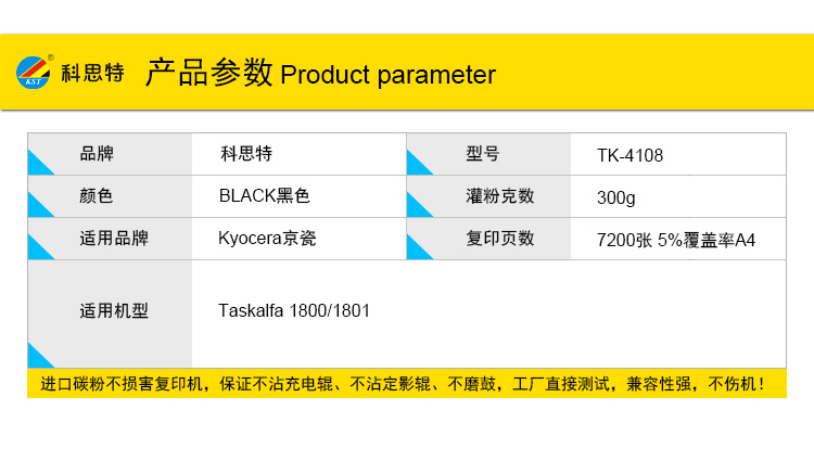 科思特 K TK4108 打印量约7200页 适用京瓷1800 1801 4108 粉盒 1.00 只/支 (计价单位:支) 黑色