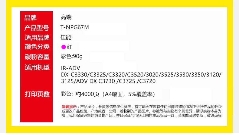 高端 T-NPG67小容量红色4000页 专业版 适用佳能C3020 C3520 3120 C3720 3320 粉盒 (计价单位:只) 红色