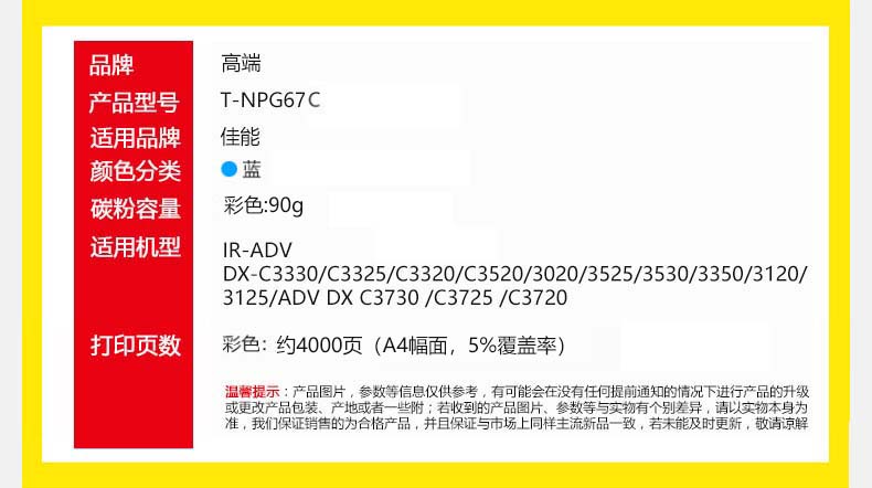 高端 T-NPG67小容量蓝色4000页 专业版 适用佳能C3020 C3520 3120 C3720 3320 粉盒 (计价单位:只) 蓝色