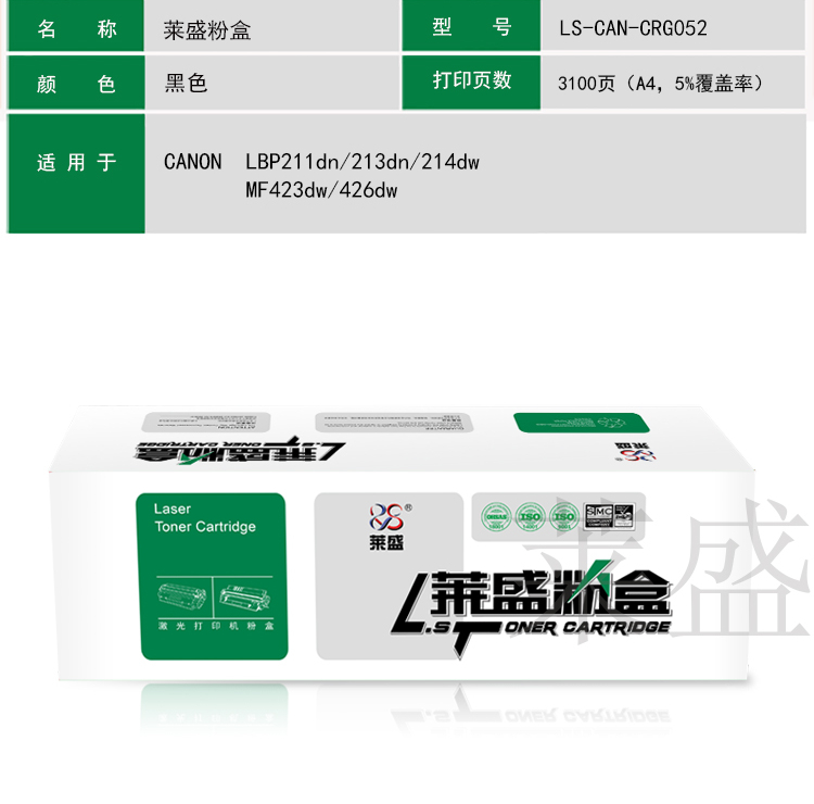 莱盛(laser) LS-CAN-CRG052 3100页 适用于CANON LBP211dn/213dn/214dw,MF423dw/426dw 硒鼓/粉盒 (计价单位:只) 黑色