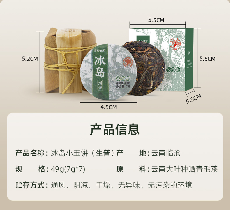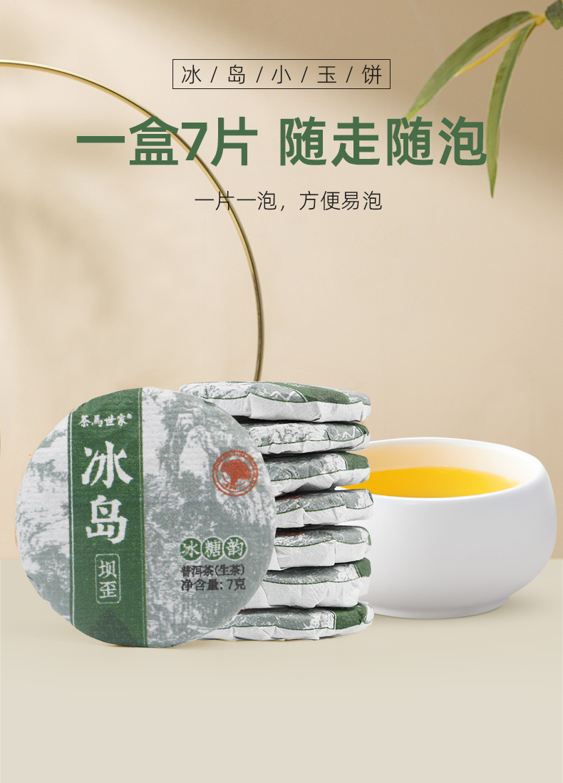 茶马世家 冰岛坝歪小玉饼普洱生茶49g(7g*7饼) 绿色