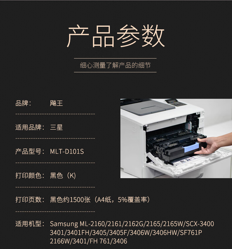 飚王 MLT-D101S 打印量1500页 适用三星ML-2161/2166W/3401/FH 761/3406 硒鼓 (计价单位:只) 黑色