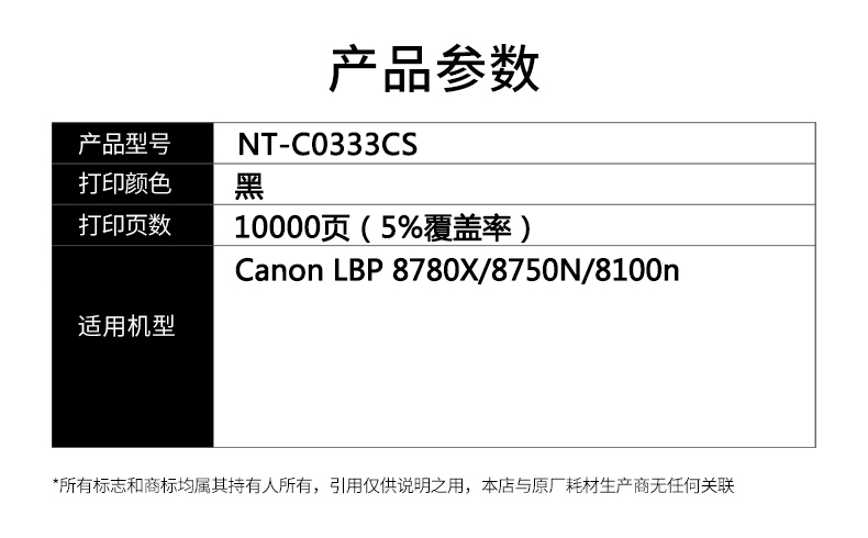 欣格 CRG-333兼容NT-C0333CS 10000页 适用Canon LBP 8780X 硒鼓 硒鼓 (计价单位:只) 黑色