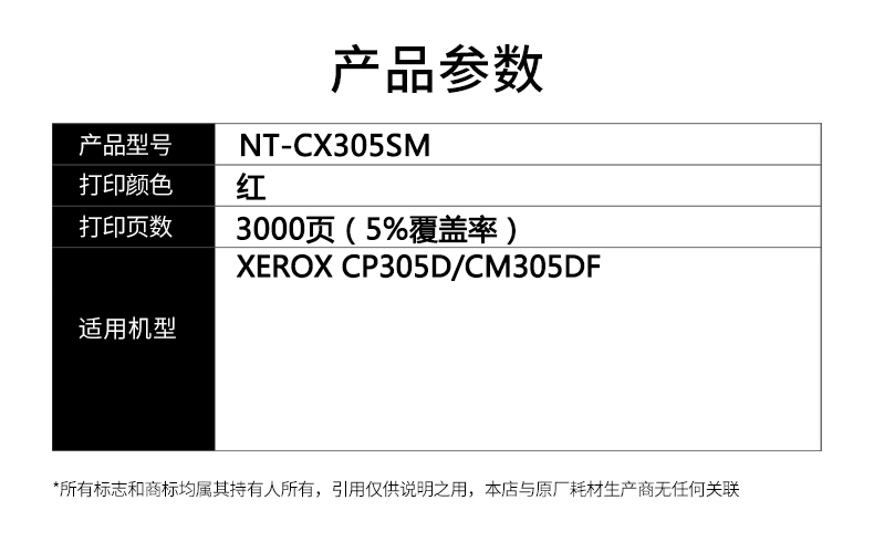 欣格 NT-CX305SM 打印量约3000页 激光碳粉盒 1.00 只/支 (计价单位:支) 红色