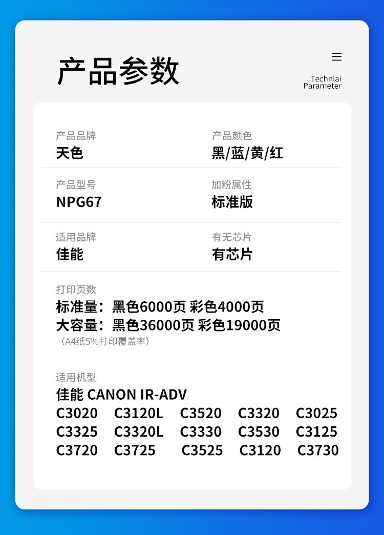 天色 NPG-67 四色套装 适用佳能IR-ADV c3300 硒鼓 1.00 只/支 (计价单位:支) 四色 四色