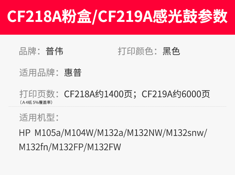 普伟 CF218A(支)(黑色1400页)适用于M132a m132nw m132fn m132fp M104W M104A 硒鼓 1.00 只/支 (计价单位:支) 黑色