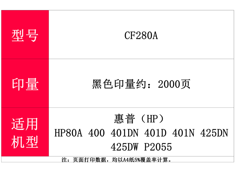 普伟 CF280A(支)(黑色2000页)适用于HP80A 400 401DN 401D 401N 425DN 425DW P2055 硒鼓 1.00 只/支 (计价单位:支) 黑色