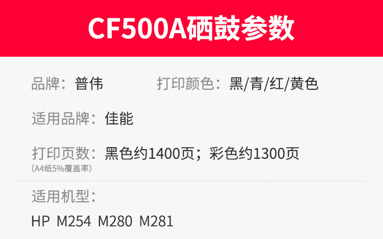 普伟 CF500A(支)(黑色1400页)适用于HP M254 M280 M281 硒鼓 1.00 只/支 (计价单位:支) 黑色