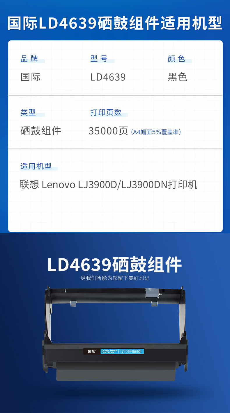 国际 LD4639 打印量约35000页 适用于LenovoLJ3900D/LJ3900DN 硒鼓 1.00 只/支 (计价单位:支) 黑色