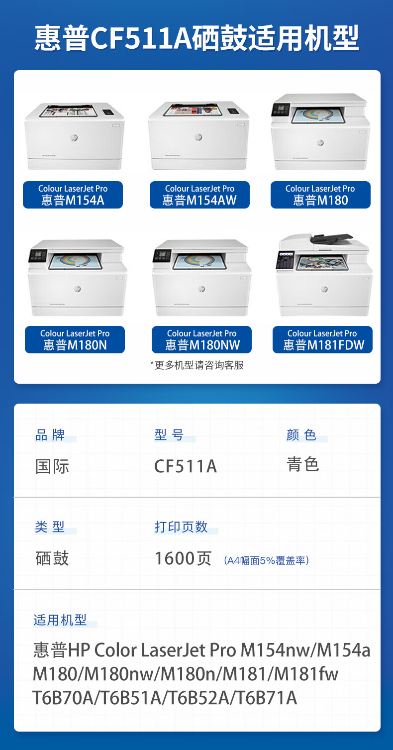 国际 CF511A 204A (适用惠普HPM154a/M154nw/M180N/M18) 900页 硒鼓 (计价单位:只) 蓝色