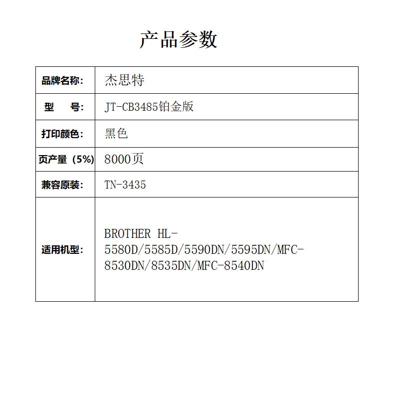 杰思特JT-CB3485铂金版兄弟MFC-8535DN 8530DN 8540DN 1支装 黑色