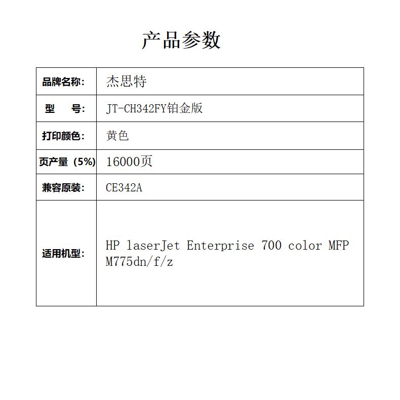 杰思特CE342A硒鼓JT-CH342FY铂金版适用HPlaserJet 700MFP 1支装 黄色