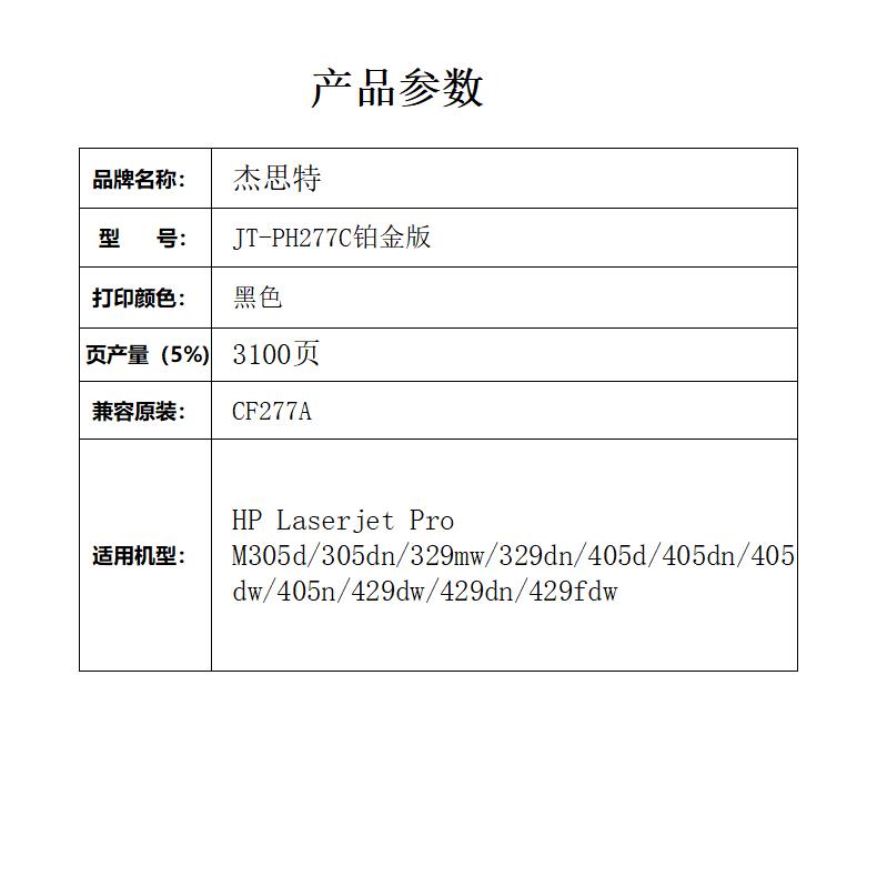 杰思特JT-PH277C铂金版带芯片适用惠普 Laserjet Pro 305dn/329mw1支装 黑色
