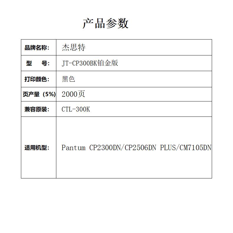 杰思特 CTL-300粉盒黑色适用奔图PANTUM CP2506DN PLUS粉盒1支装 黑色