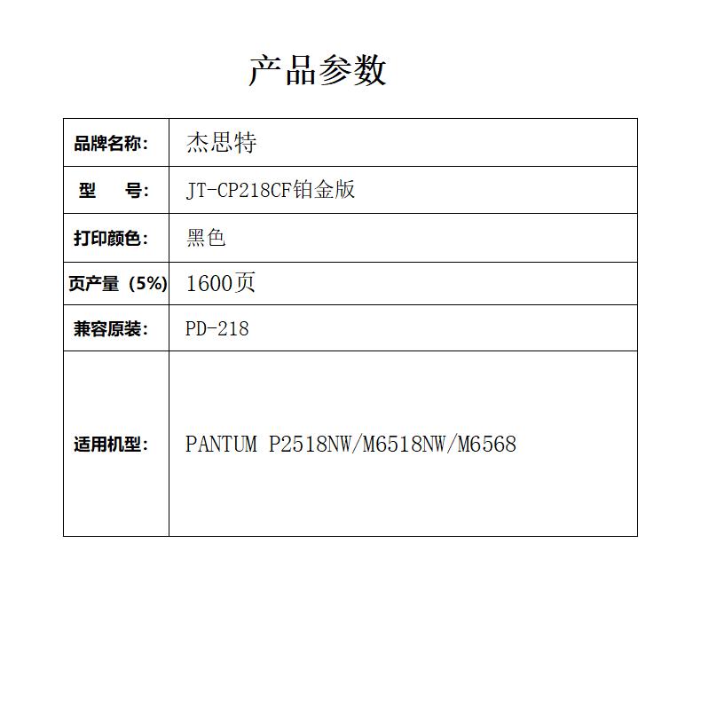 杰思特JT-CP218CF铂金版适用奔图PANTUM P2518NW M6518NW 1支装 黑色