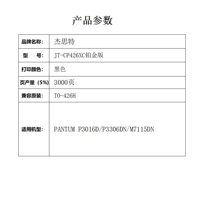 杰思特JT-CP426XC铂金版大容量适用奔图PANTUMP3016D/P3306DN1支装 黑色