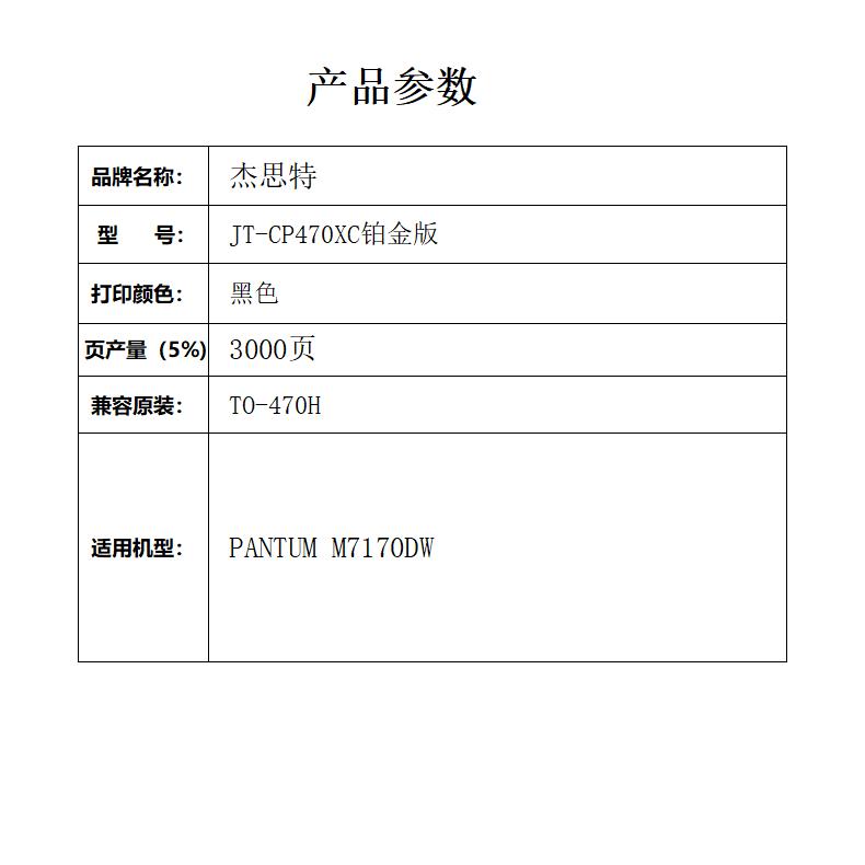 杰思特JT-CP470XC铂金版大容量适用PANTUM M7170DW1支装 黑色