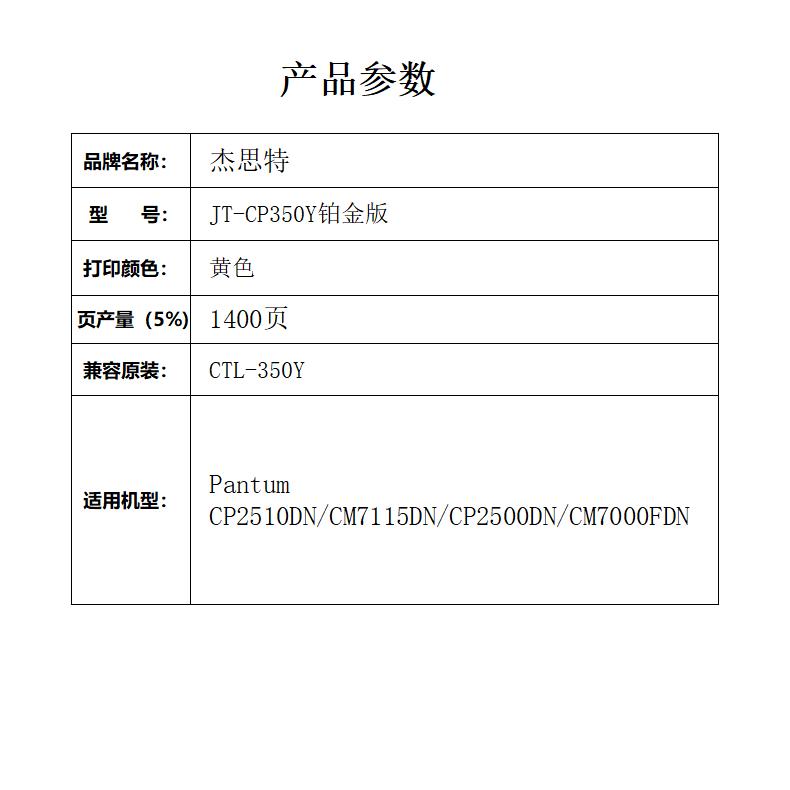 杰思特CTL-350Y 黄色粉盒 适用奔图PANTUM CP2510DN CM7115DN 1支装 黄色
