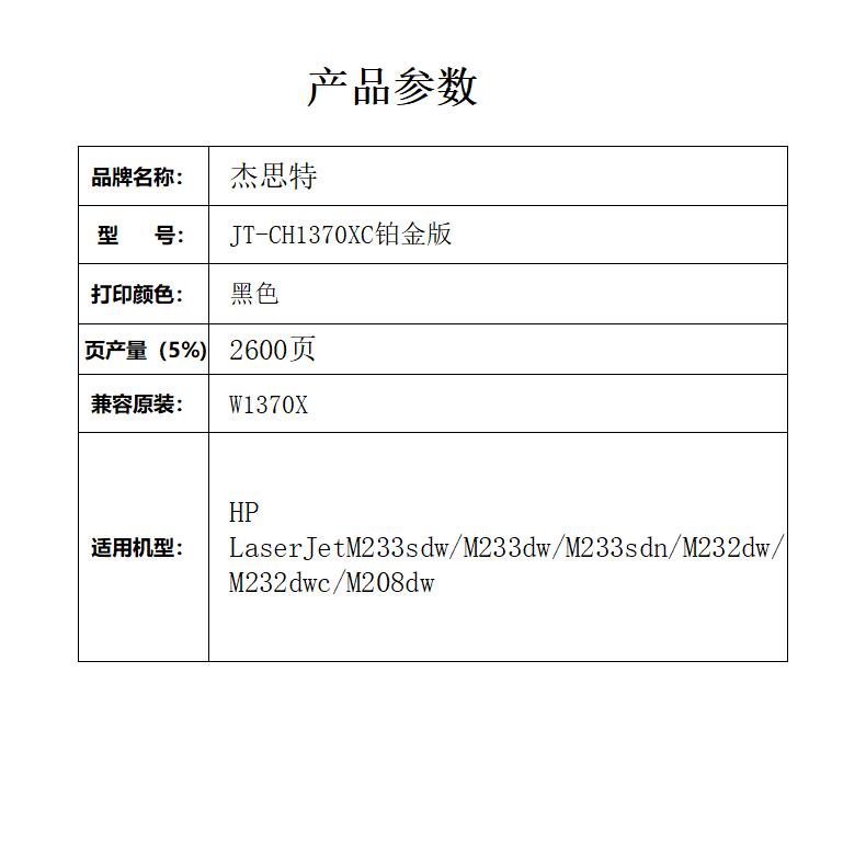杰思特JT-CH1370XC铂金版大容量适用惠普hp M208dw/232dw/233sdn1支装 黑色