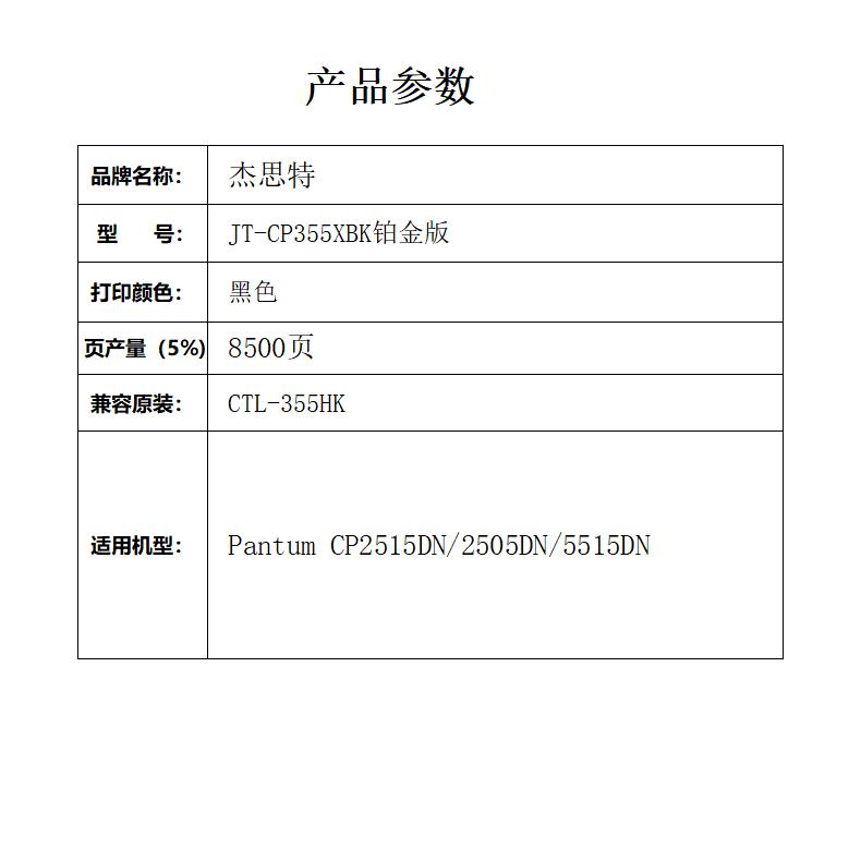 杰思特JT-CP355XBK铂金版适用奔图PANTUM CTL-355HK高容量黑色粉盒1支装 黑色