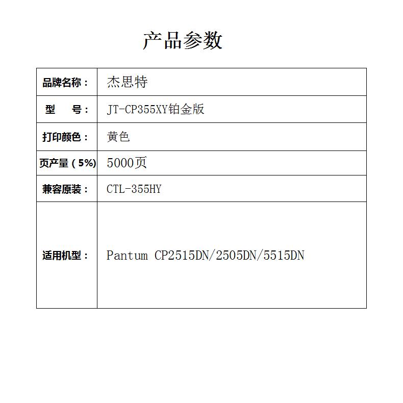 杰思特JT-CP355XY铂金版适用奔图PANTUM CTL-355HY高容量黄色粉盒1支装 黄色