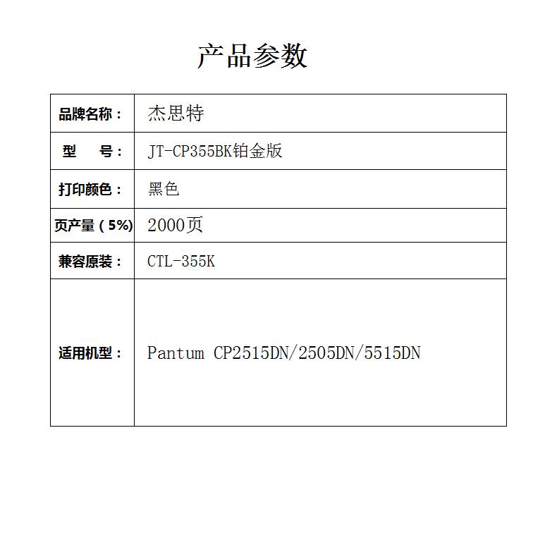 杰思特JT-CP355BK铂金版适用 CTL-355K粉盒 机型 奔图CP2515DN墨盒1支装 黑色