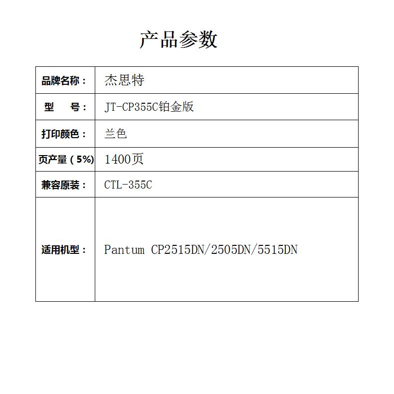 杰思特JT-CP355C铂金版适用 CTL-355K粉盒 机型 奔图CP2515DN墨盒1支装 蓝色