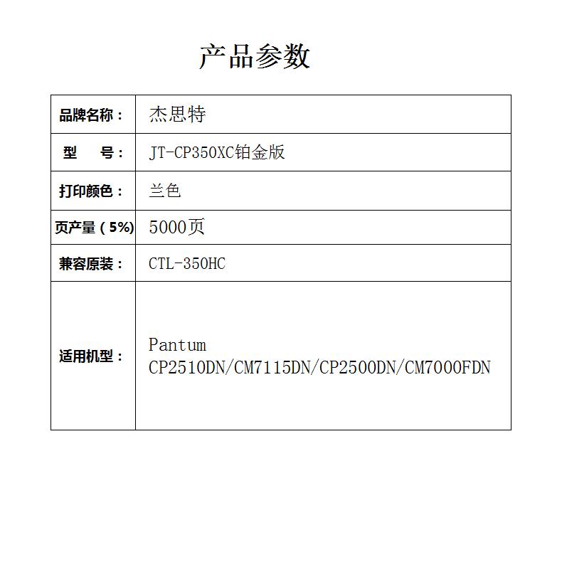 杰思特JT-CP350XC铂金版适用奔图PANTUM CTL-350HC高容青色粉盒1支装 蓝色