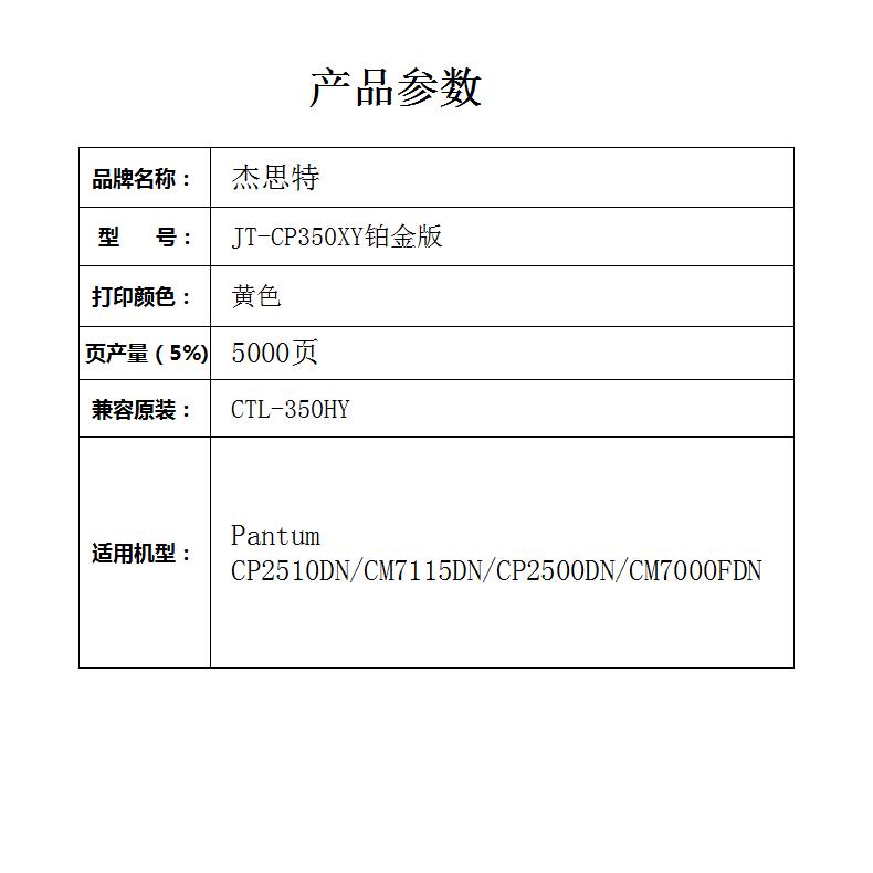 杰思特JT-CP350XY铂金版适用奔图PANTUM CTL-350HY 1支装 黄色