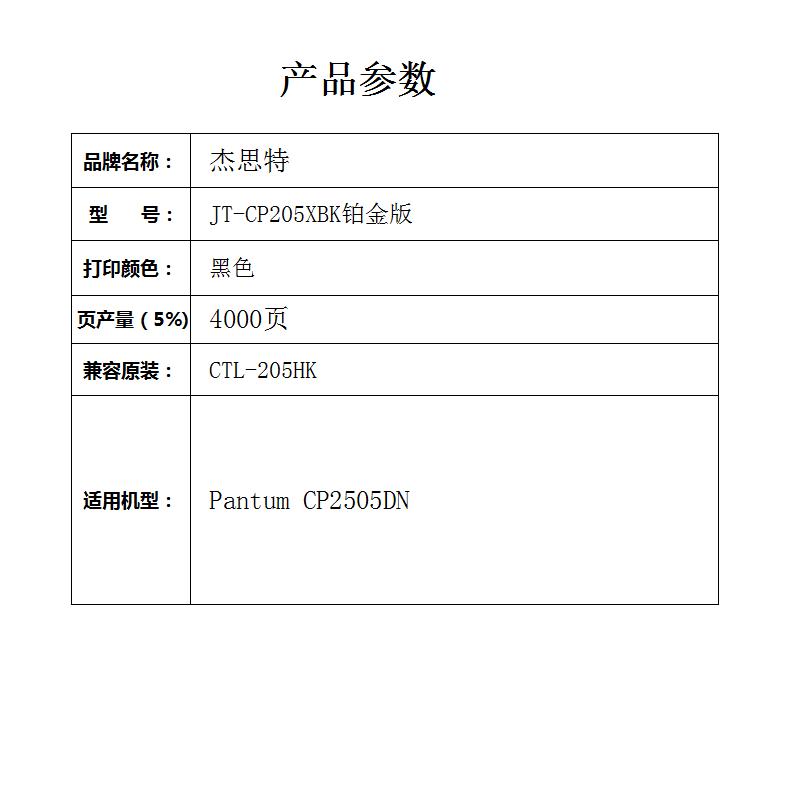 杰思特JT-CP205XBK铂金版CTL-205HK高容量黑色粉盒适用奔图CP2505DN1支装 黑色