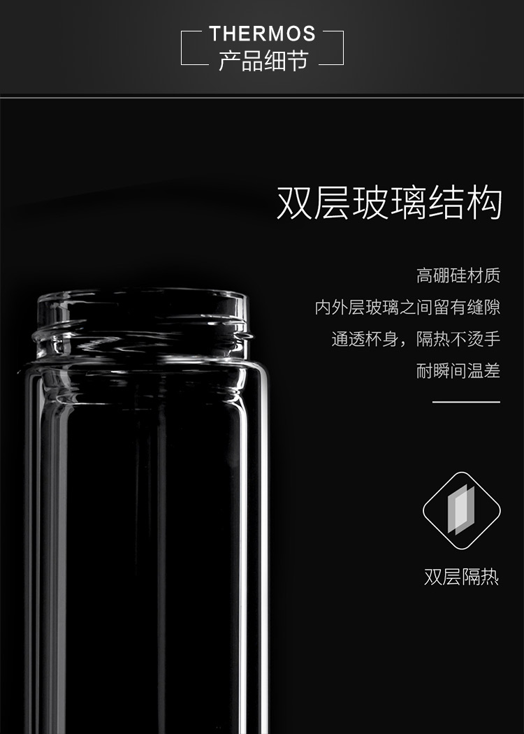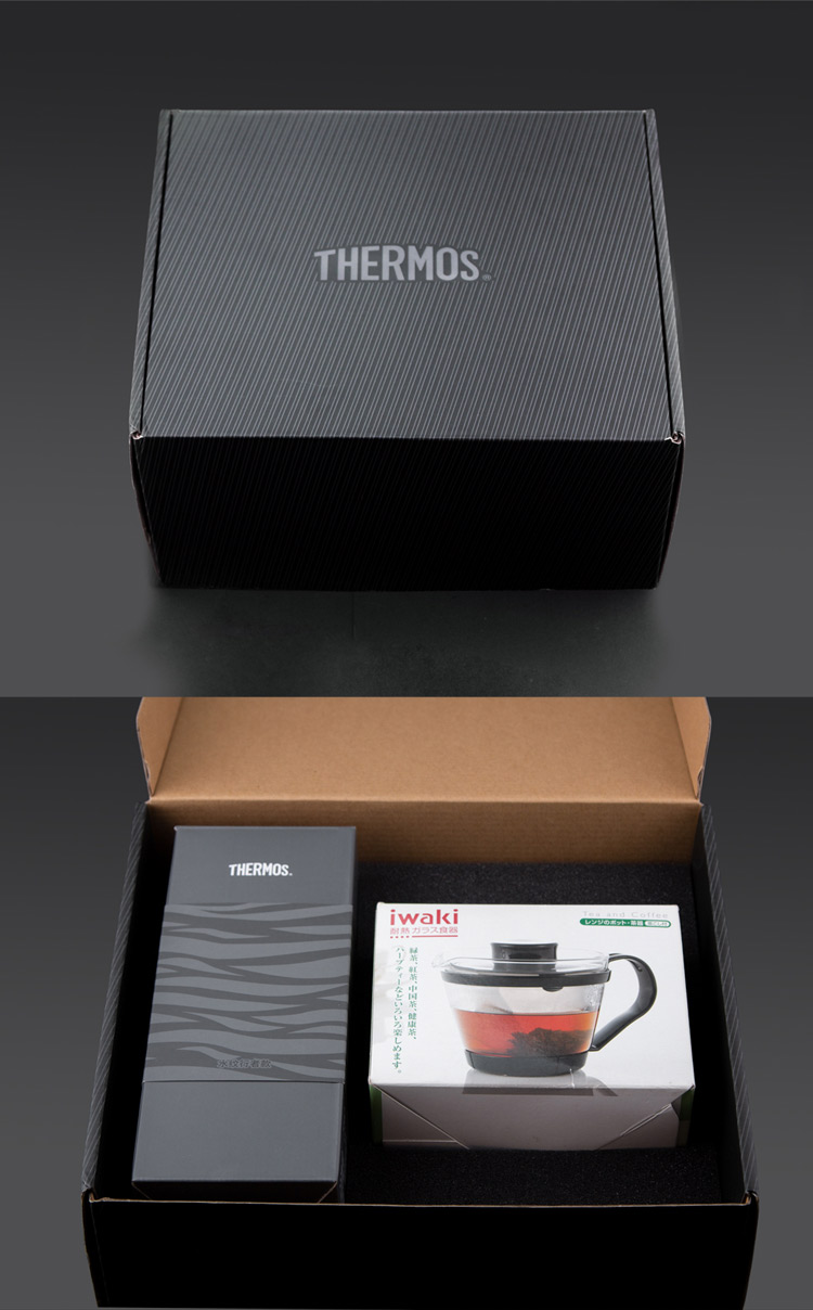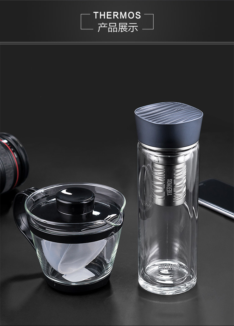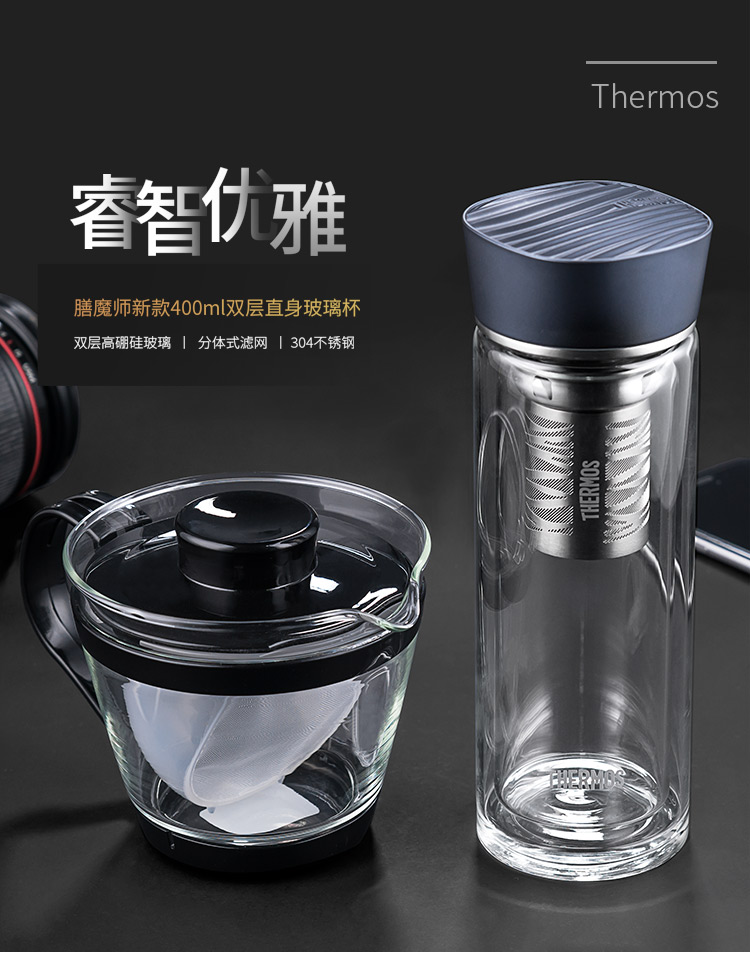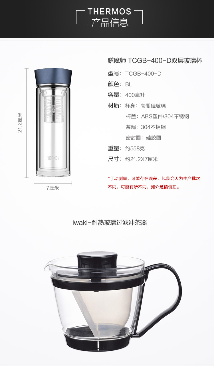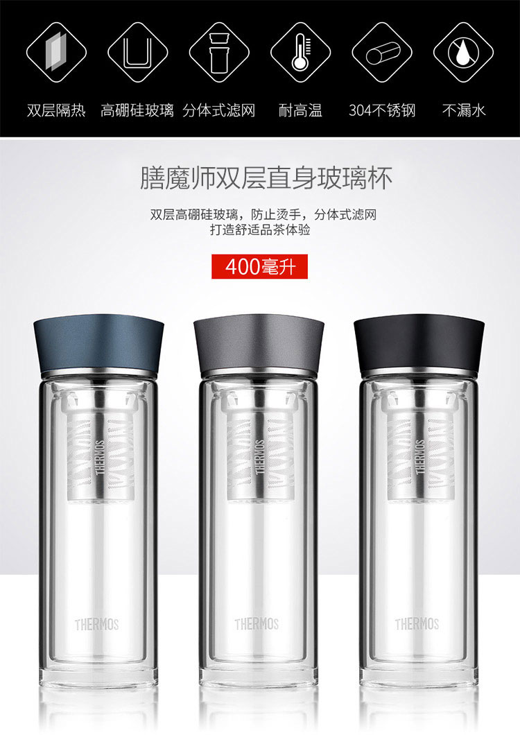 THERMOS膳魔师400ml水杯+400ml茶壶双层玻璃杯商务套装礼盒TCGB-400(单位:个) 蓝色