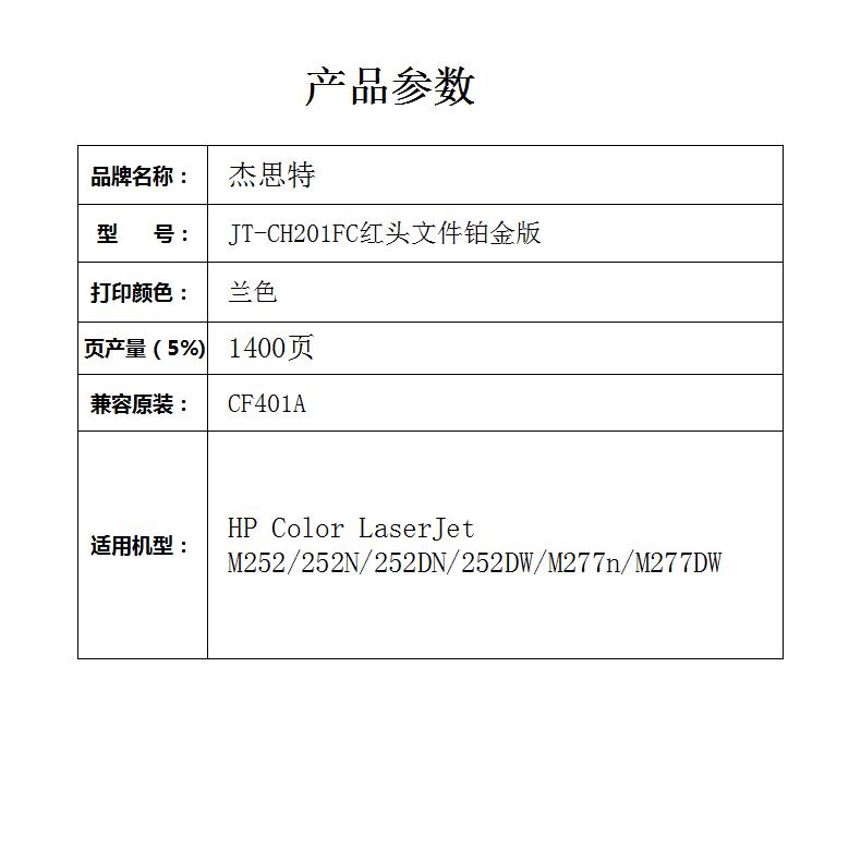 杰思特CF401A硒鼓JT-CH201FC红头文件铂金版适用惠普M252N/DN/DW M2771支 蓝色