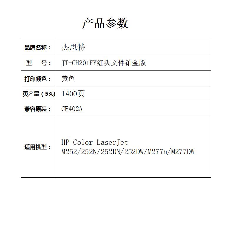 杰思特CF402A硒鼓JT-CH201FY红头文件铂金版适用HPM252N/DN/DW 1支装 黄色