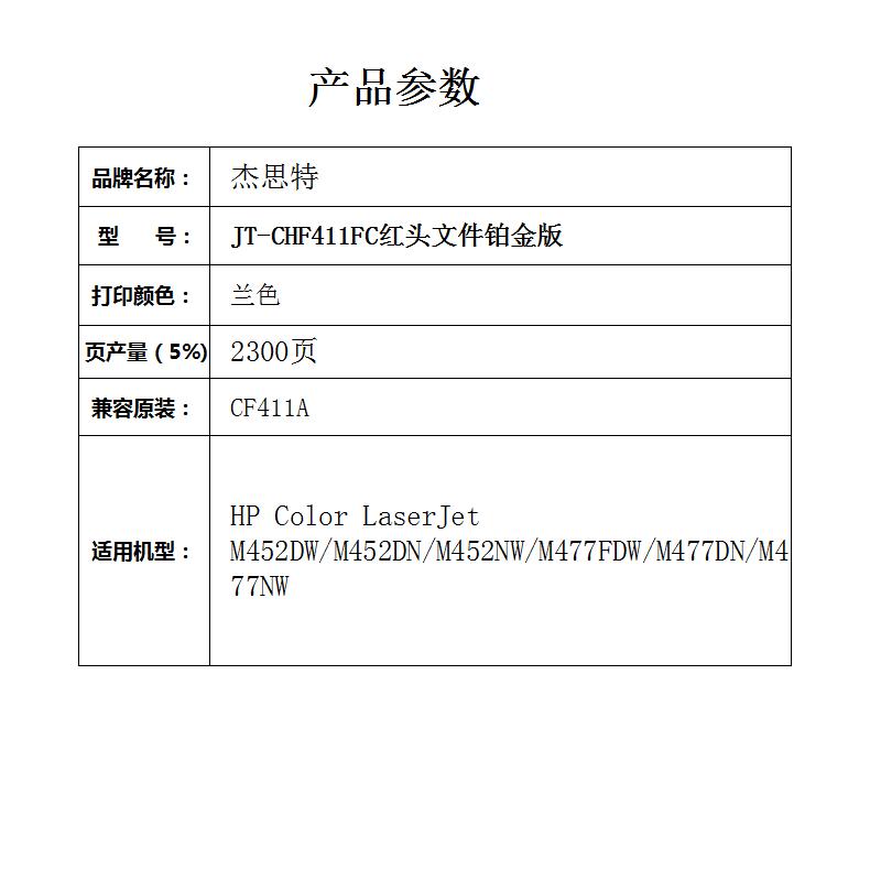 杰思特CF411A硒鼓JT-CHF411FC红头文件铂金版适用惠普HP M477fnw/DW1支装 蓝色