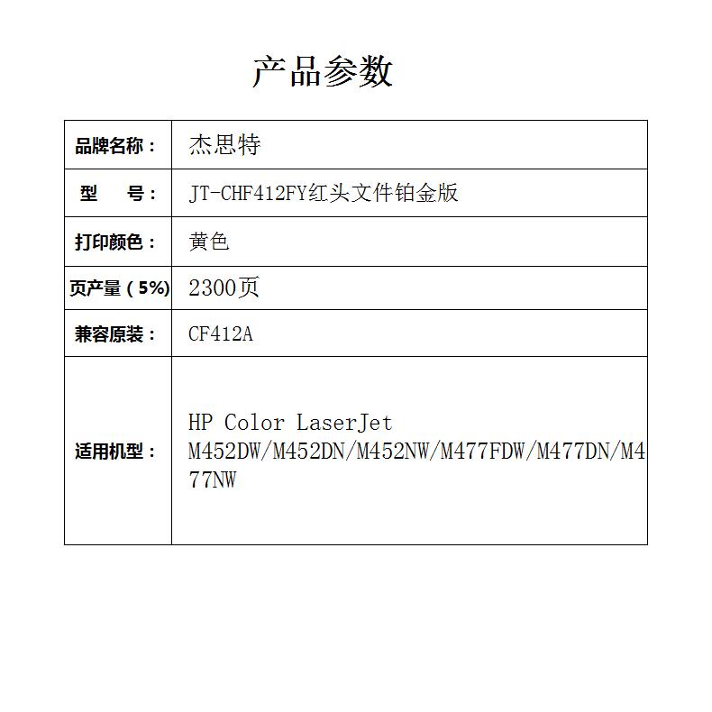 杰思特CF412A硒鼓JT-CHF412FY红头文件铂金版适用惠普HP M477fnw/DW1支装 黄色