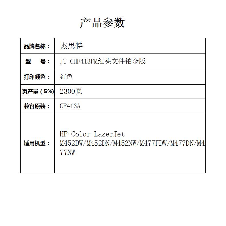 杰思特CF413A硒鼓JT-CHF413FM红头文件铂金版适用惠普HP M477fnw/DW1支装 红色