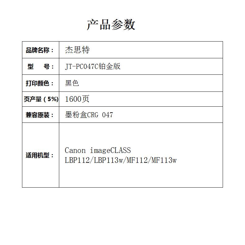 杰思特CRG047硒鼓JT-PC047C铂金版适用佳能LBP112 LBP113w1支装 黑色