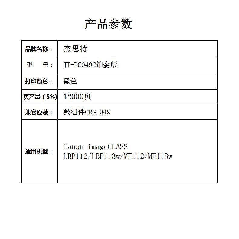 杰思特JT-DC049C大容量硒鼓JT-DC049C铂金版适用佳能LBP112 LBP113w1支装 黑色