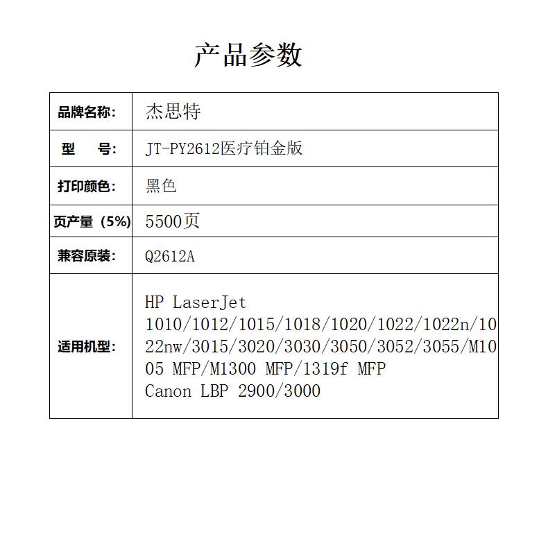 杰思特12A硒鼓JT-PY2612医用铂金版适用q2612a 墨盒惠普1005 1020plus1支 黑色