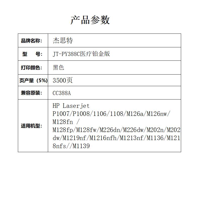 杰思特CC388A硒鼓JT-PY388C医用铂金版适用惠普P1007/P1008/11061支装 黑色