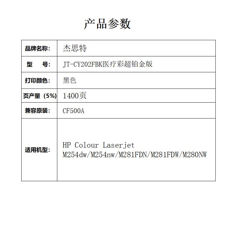 杰思特CF500A硒鼓JT-CY202FBK医用彩超铂金版 适用惠普M254DW M281FDW1支 黑色
