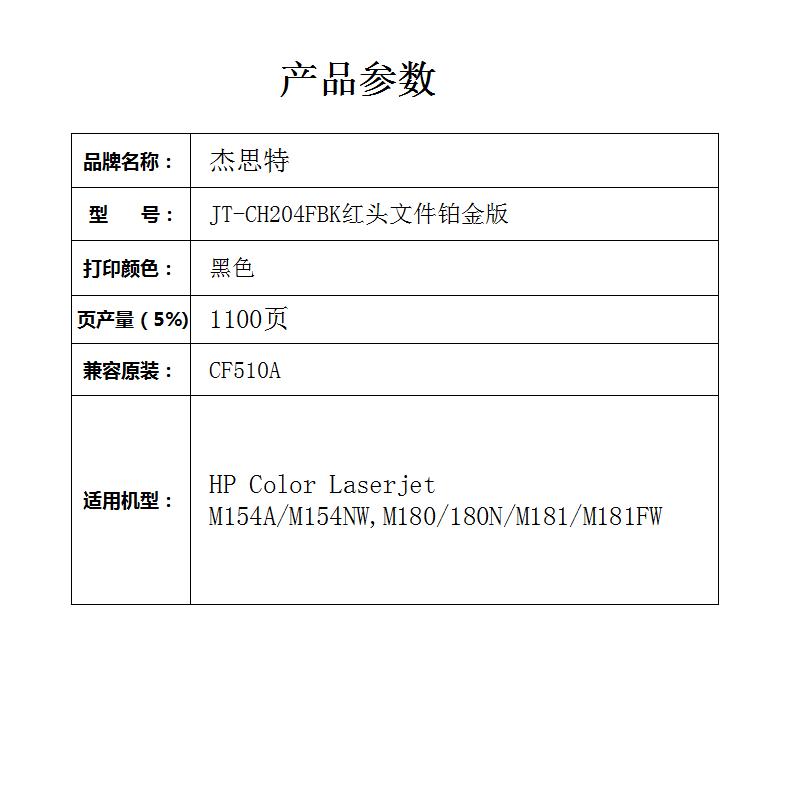 杰思特CF510A硒鼓JT-CH204FBK红头文件铂金版适用惠普 M154A硒鼓1支装 黑色