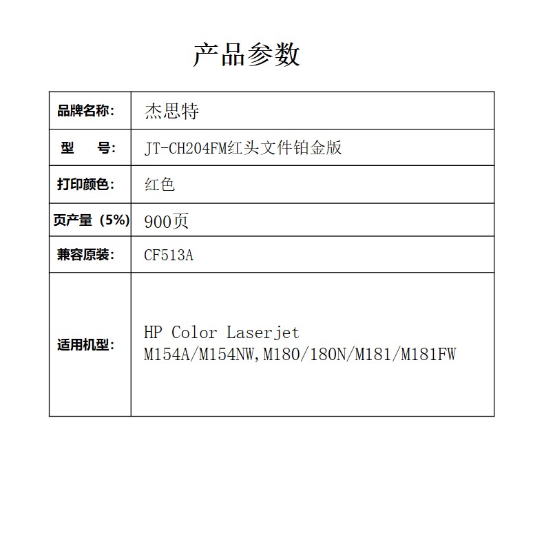 杰思特CF513A硒鼓JT-CH204FM红头文件铂金版适用惠普 M154A硒鼓 M154NW1支装 红色