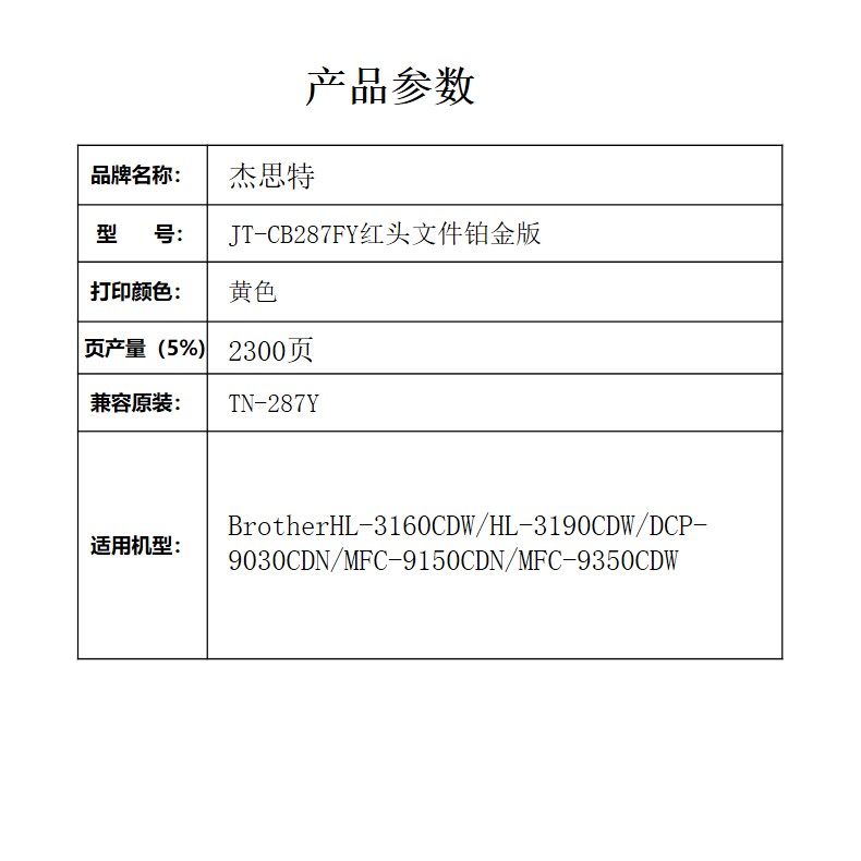杰思特JT-CB287FY红头文件铂金版适用Brother HL-3160CDW/HL1支装 黄色