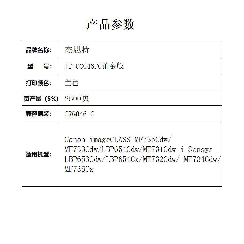 杰思特JT-CC046FC铂金版硒鼓适用佳能lbp653cdw MF735Cx 732Cdw1支装 蓝色