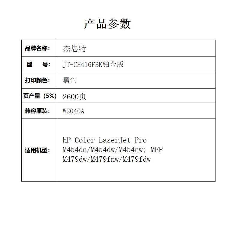 杰思特JT-CH416FBK铂金版硒鼓适用惠普 m454dw m454dn m479fdw1支装 红色