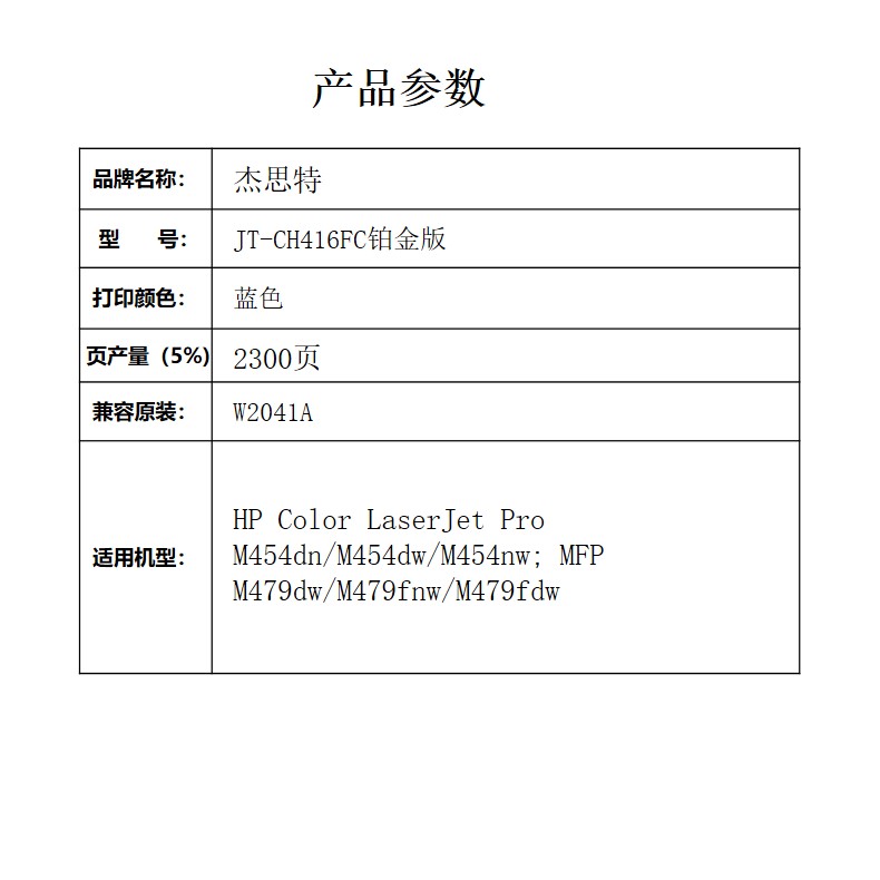 杰思特JT-CH416FC铂金版硒鼓适用惠普 m454dw m454dn m479fdw1支装 红色