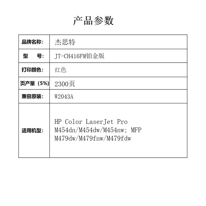 杰思特JT-CH416FM铂金版硒鼓适用惠普 m454dw m454dn m479fdw 单位:支 黄色