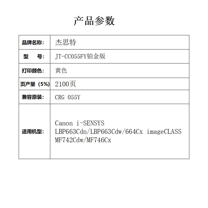 杰思特JT-CC055FY铂金版硒鼓适用佳能LBP663Cdn 663Cdw 664Cx1支装 黄色