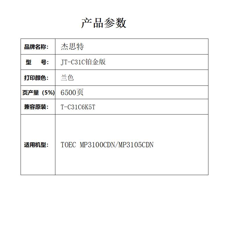 杰思特JT-C31C铂金版青色粉盒 适用于光电通TOEC MP3100CDN MP3105CDN1支 蓝色